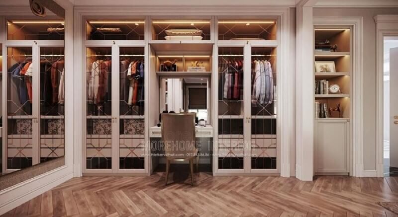 Phòng ngủ liền phòng thay đồ ấn tượng với cách sắp xếp hiện đại, sang trọng