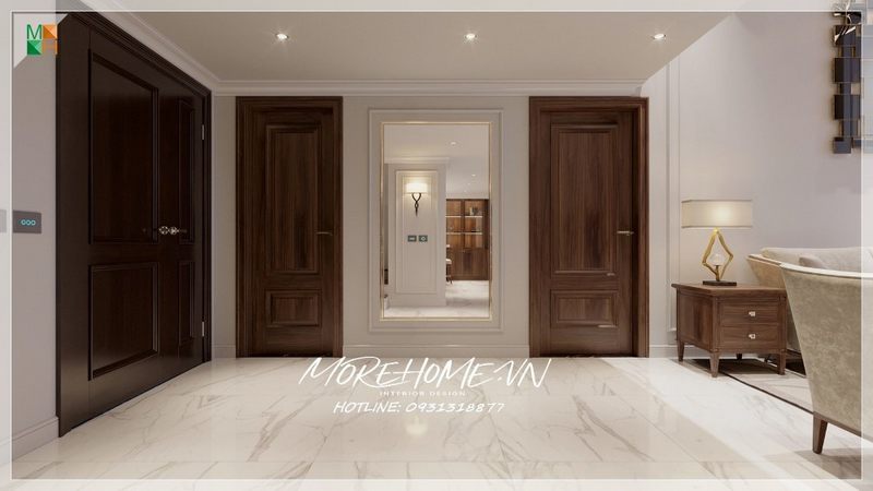 Trang trí biệt thự, nhà phố đẹp, sang trọng với ý tưởng sử dụng phong cách thiết kế nội thất tân cổ điển kết hợp đồ nội thất gỗ óc chó.