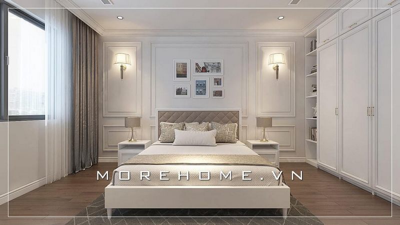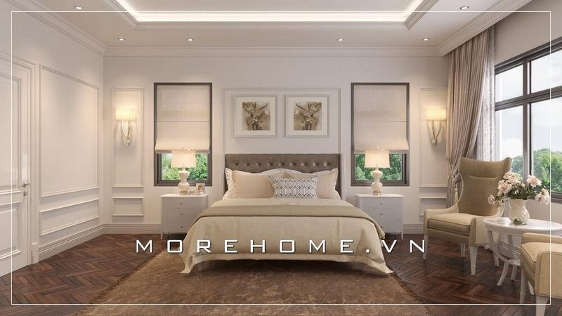 Mẫu giường ngủ có chân với đường cong tân cổ điển tạo điểm nhấn cho căn phòng