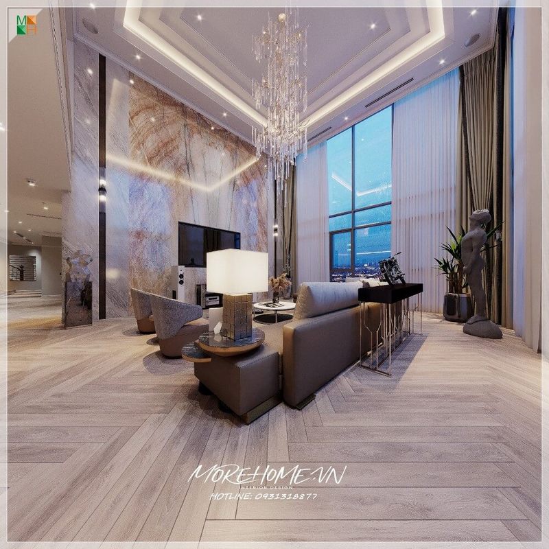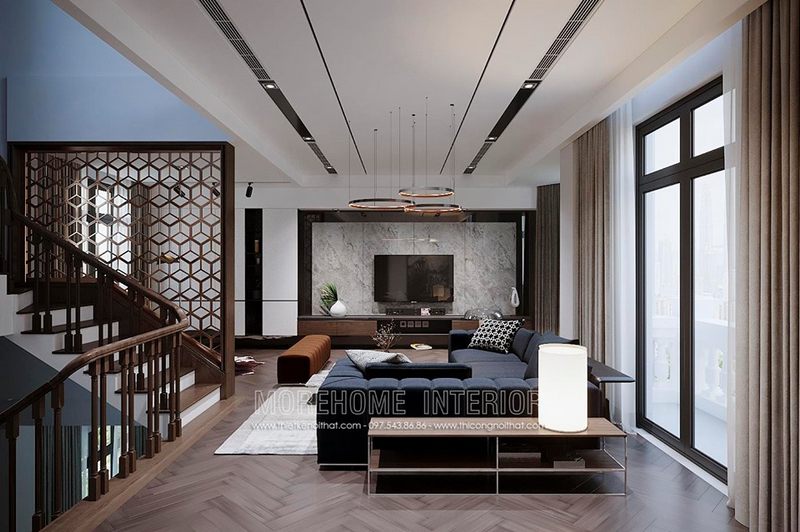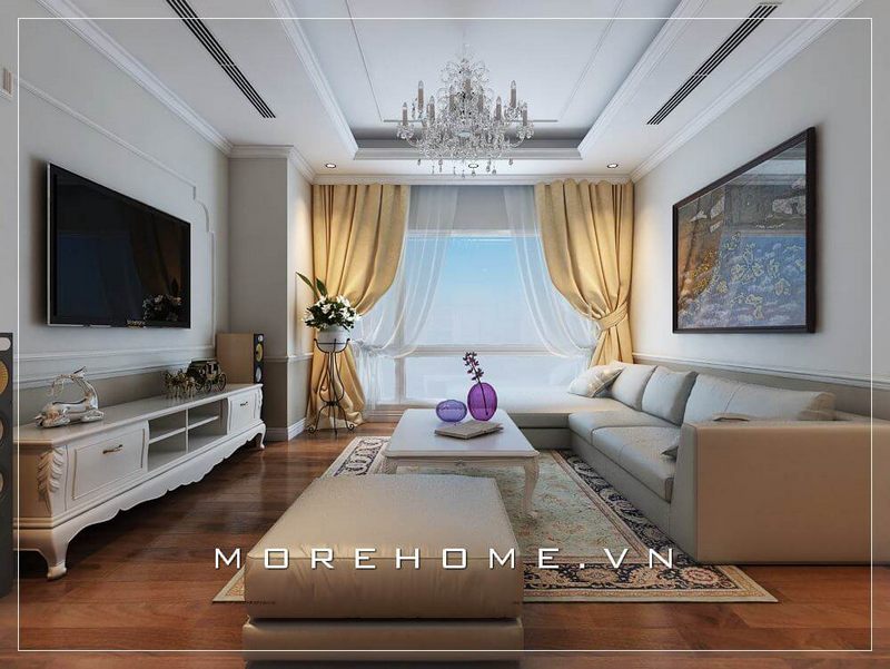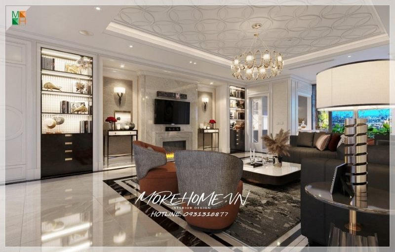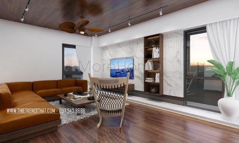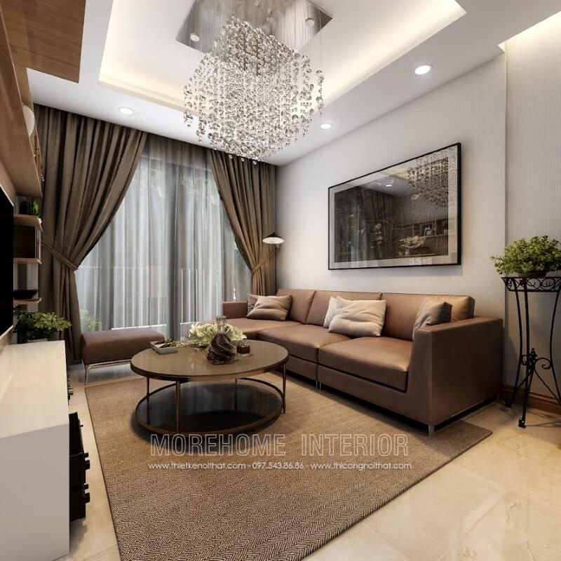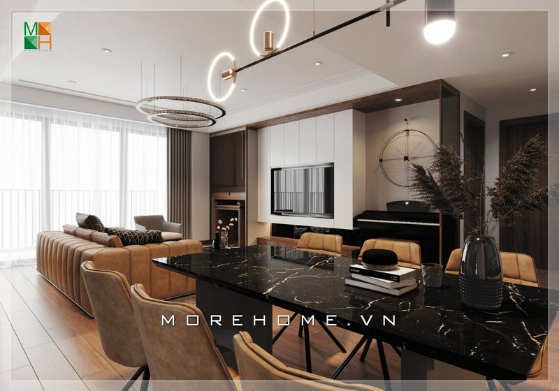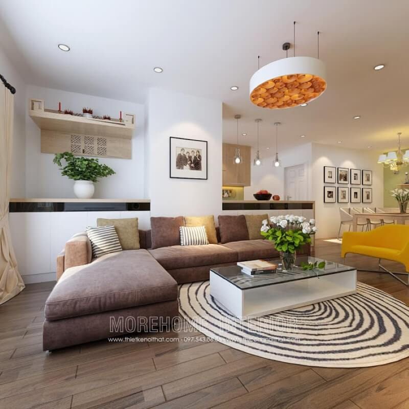 Với kiểu dáng thiết kế hiện đại mẫu thiết kế phòng khách chung cư của Morehome luôn nhận được sự ưu ái và ủng hộ của đông đảo khách hàng.