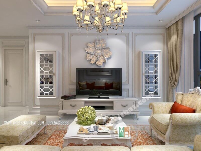 Trang trí phòng khách chung cư đẹp hơn với mẫu kệ ti vi tân cổ điển
