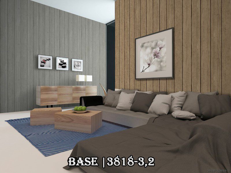 Một không gian phòng khách giản dị, gần gũi với sự kết hợp của 2 mẫu giấy dán tường 3818-3 và 3818-2.