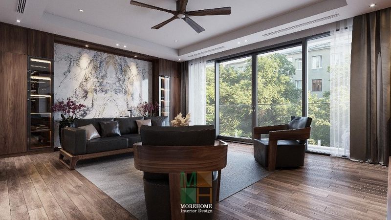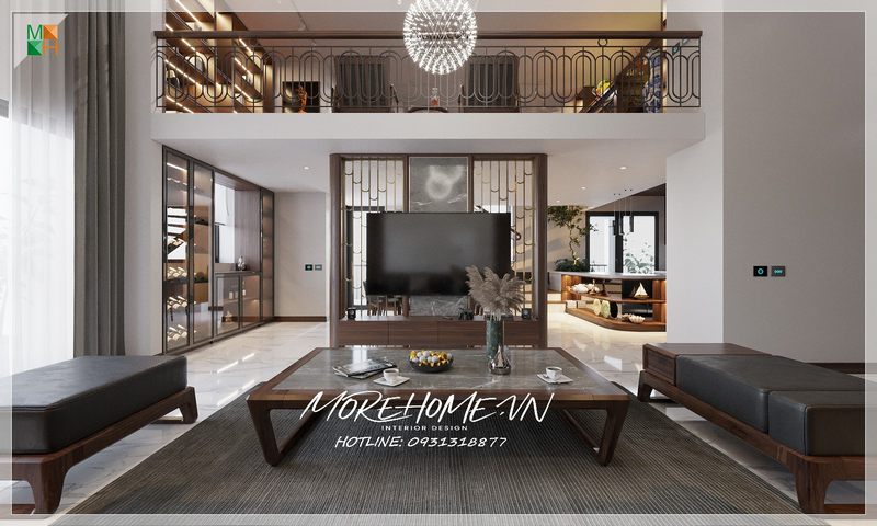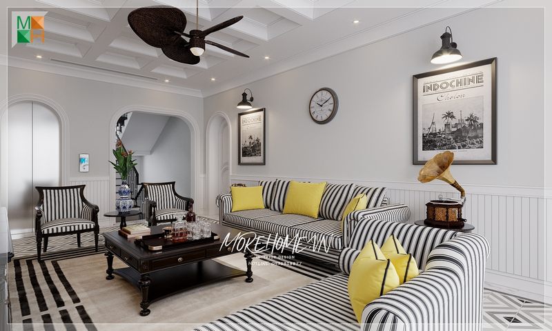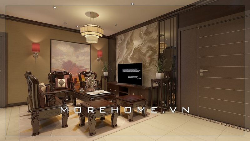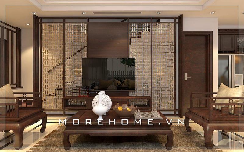 Ấn tượng với mẫu thiết kế phòng khách mang phong cách thiết kế Indochine của đội ngũ KTS của Morehome.