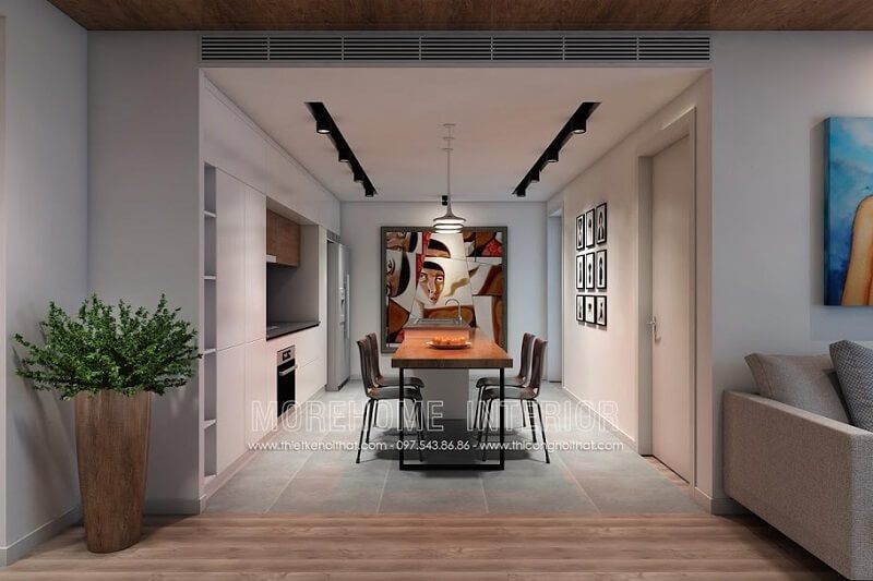 Không thể bỏ qua bộ bàn ăn hiện đại với thiết kế cá tính và những đường nét tinh tế giúp tạo điểm nhấn nổi bật cho căn phòng.